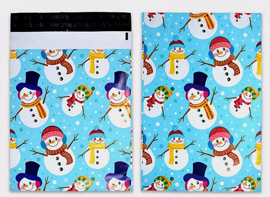 Blue Snowman Poly Mailers Size 10x13 Christmas Shipping Bags