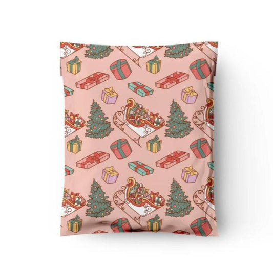 Christmas Sleigh Poly Mailers Size 10x13 Winter Shipping Bags