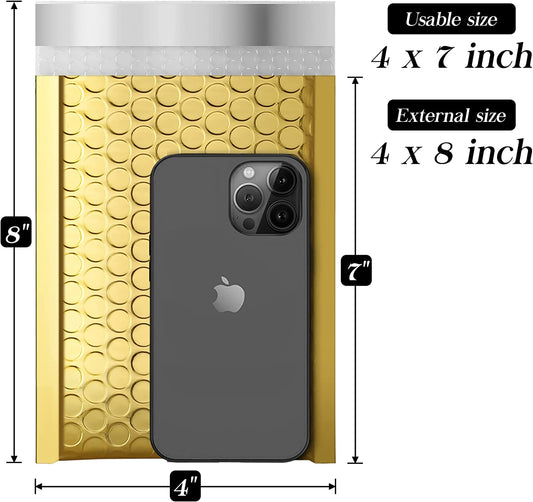 4x8 Bubble Mailer Padded Envelope #000 | Usable Size 4x7"| Gold